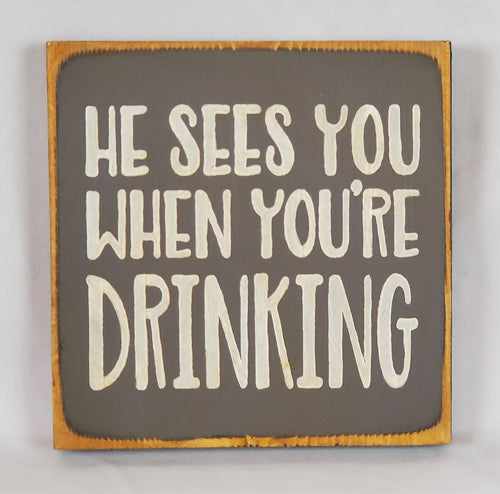He Sees You When You're Drinking Wooden Sign